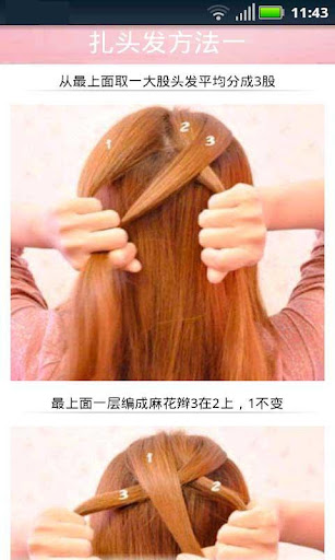 1、扎发技巧模块图像详细介绍扎头发的方法,每个步骤都有文字和图片详细的描述