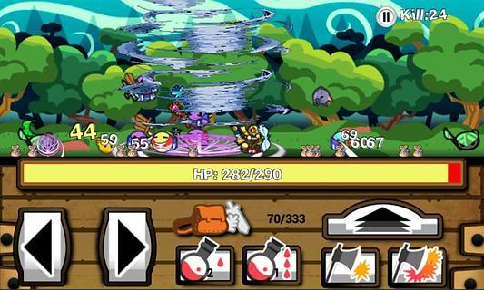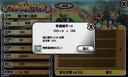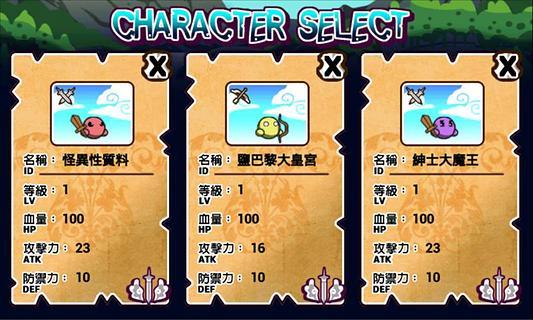 打怪练功将RPG游戏的最值得玩的三个要素提炼出来恶搞制作了一款游戏,RPG游戏的铁三角是什麼?不外乎就是打怪,练功,冲装备!本游戏就是将这三点发挥到淋漓尽致的作品!游戏特色:-游戏内含铁三角职业:-擅长近战的战士,飞行敌人的剋星:弓箭手,能够使用范围魔法的魔法师-每个职业都有其擅长跟不善长的领域-像是战士虽然有高攻击力能够快速的清理地面的敌人,对付空中敌人就特别不拿手-弓箭手有着防空砲的美名,但是对付地面的敌人却是慢吞吞-魔法师对空对地都有一定伤害,不过攻击需要咏唱时间让机动性低落-你可随着关卡的不同而随时转职其他职业,不用在创角的时候烦恼究竟要选择什麼职业-装备的强度决定了你的强度,在游戏中可以将自己的武器提升到 30这种高的吓人的数值!就算是最一开始的初始武器, 30之后也决不逊色於其他高阶武器衝装的通过机率更是高达50上!让你轻轻松松就衝上 15!-游戏中可藉由商店贩卖战斗中获得的战利品来获得金币,并且利用金币购买好看的装备,或者可以藉由打怪掉落的装备来打扮自己的勇者-酒吧则是提供了一个管道来内分享自己勇者来炫耀给别人看,而其他人也可以僱用你的勇者来替他们破关只要有被招募就可以获得一笔佣金,有事没事就到酒吧逛逛吧-目前共有五大关,各有不同的主题及怪物,每关的最后都会有较强大的怪物坐镇!要是五大关卡还不够满足你的的神兵利器,可以试着去挑战特殊任务--深渊关卡,怪物强度保证叁级跳攻略深渊的同时也能够获得PT,让你在世界排行上更容易出人头地!