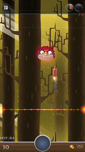 一只不断哼着舞曲的小鸟(其实它是一只火烈鸟),点击屏幕发射烟花火箭来击中它,被击中时,小鸟会表现出各种卖萌调皮的表情,若失手,小鸟则会露出奸计得逞的笑脸宣告游戏结束。