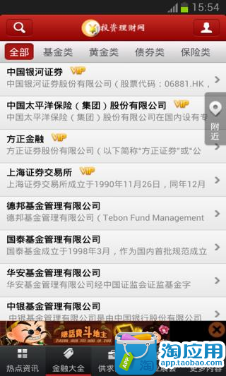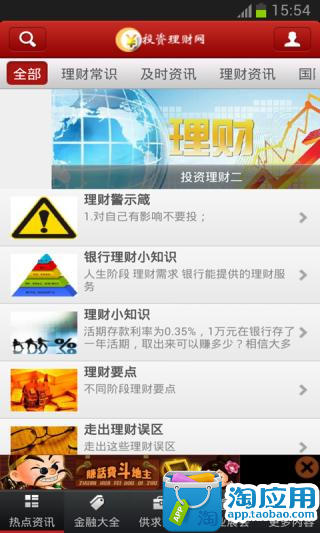 V投资理财网目前应用于手机APP客户端,更方便于我们的移动快捷生活。在中国,"理财"一词最早见诸于20世纪90年代初期的报端。随着我国股票债券市场的扩容,商业银行、零售业务的日趋丰富和市民总体收入的逐年上升,"理财"概念逐渐走俏。个人理财品种大致可以分为个人 资产品种和个人负债品种,共同外汇、基金、股票、债券、存款和人寿保险等属于个人资产品种;投资理财网给予您最合理适用的理财之道。
