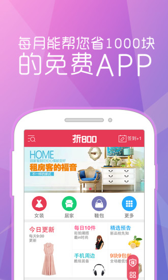 每天千余款折800精选9.9元包邮商品更新推荐,藏不住的诱惑就在折800!八千万用户网购的共同选择!每一款都是折800的小编精挑细选,跟卖家斗智斗勇砍价而来!女装、母婴、郊游必备、化妆品、鞋包、数码、创意配饰、家居等……欢快过十一,旅游怎能少了折800.每日特价,天天包邮,你值得收藏的购物神器!【应用特色】1.“折800商城”精选商品,支持多种支付方式2“职业砍价师”心黑手狠帮您砍价低至1折3.“职业验货师”9大工序帮您验货,经得起千锤百炼4.“职业选款师”帮您从万千商品中精挑细选5“开卖提醒”让你不再错过开卖时机6.“轻松赚积分”签到、下单、推荐好友购买均可获得积分7.“积分当钱花”免费兑换上百种商品,抽奖、拍卖玩不停