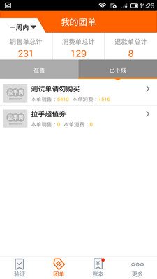 拉手商家便捷验券、团单数据查询、账务管理手机客户端。