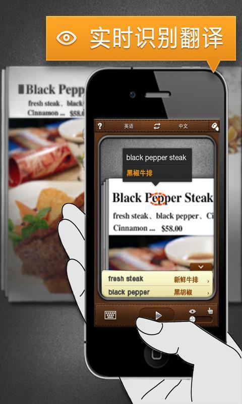 ——无须拍照,无须等待,只要在相机取景框中对焦生词,识别及翻译结果立等可得。