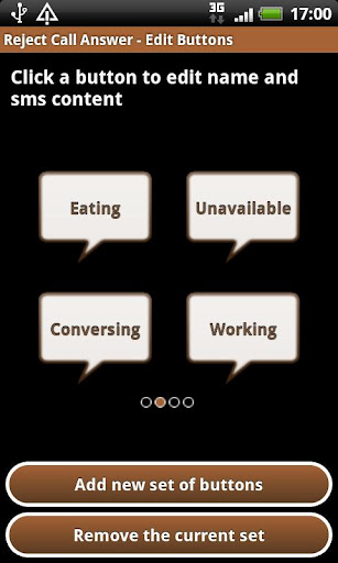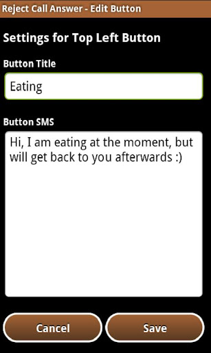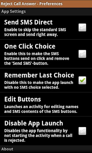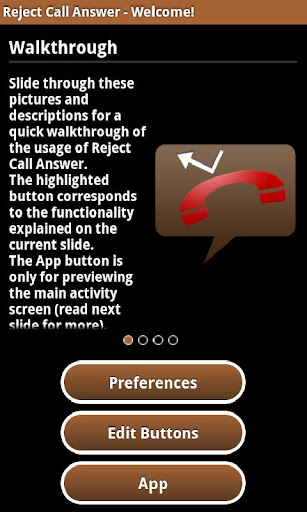 拒絕呼叫應答提供其功能,當您拒絕接聽來電。拒絕呼叫應答,然後讓你挑一個短信回答一個按鈕拒絕呼叫。按鈕的名稱的短信內容是通過一個編輯按鈕,屏幕上的定制。