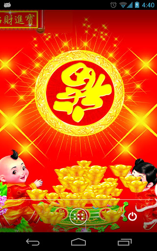 請按如下操作:首頁 - >菜單 - >桌布 - >及時桌布,向下滾動列表,選定【賀新年招財進寶動態桌布】