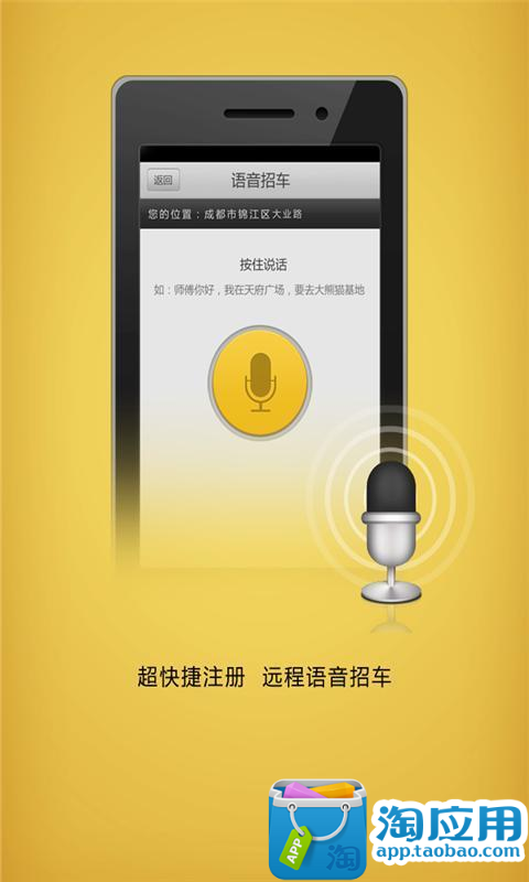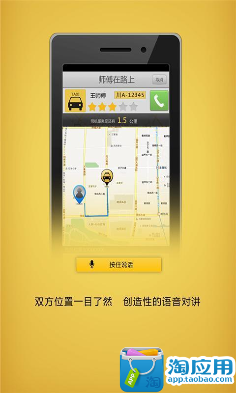 “招车即来”手机一键打车由成都思珩汇智科技有限公司自主研发的移动互联产品。 《招车即来》-西南地区第一款能打到正规出租车的叫车应用。通过《招车即来》应用让你远离苦苦等车和抢车的烦恼,出租车动向随时掌握预约,真正的手机上的TAXI。 “招车即来”手机一键打车。为您的出行打车提供省时、省力、快捷服务,不想等车,就用“招车即来”吧! 介绍: ★西南地区第一款能打到正规出租车的叫车应用。 ★成都市1万多辆正规出租车,掌上预约,80%招车成功率。 ★出租车动向随时掌握,真正手机上的TAXI。 ★让您不在街边风吹日晒,远离苦苦等车和抢车的烦恼。 产品介绍: 启动应用,附近车辆一目了然。 快捷注册,一键语音招车。 创造性的语音对讲,与司机沟通简单方便。 全程语音提示。 已开通城市: 目前已开通成都。