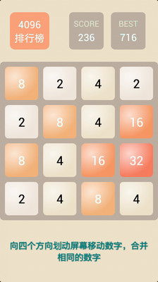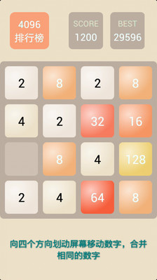 还在玩"2048"?是不是没过瘾?试试4096吧,让你根本停不下来!只需向四个方向划动屏幕,让16宫格内两两相同的数字碰撞就会诞生一个翻倍的数字,当界面全部被数字填满时,游戏就会结束。...