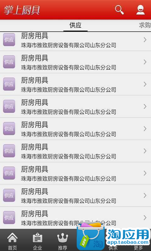 掌上厨具app是一款基于Android平台完全免费集厨具行业资讯和厨具产品供应等一系列信息平台客户端. 掌上厨具app是一款基于Android平台完全免费集厨具行业资讯和厨具产品供应等一系列信息平台客户端,我们依托着庞大的资讯服务提供了实时更新资讯,是良好的品牌供应信息和业界的安全软件、集家庭厨具信息、商业厨具信息、品牌信息、行业新闻、最新资讯、产品求购、商品供应和招商加盟等功能的手机应用,防隐私泄漏,摇一摇、扫一扫,电话IP一键拨号,掌上厨具免费为您提供供求信息发布平台,免费展示最新、最全广告行业供求信息,寻找帮助、发布信息、寻找商机就到掌上厨具.
