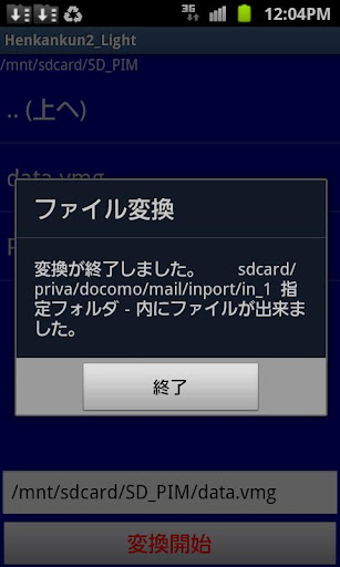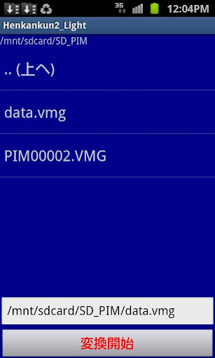 SDカードのSD_PIMフォルダの中にあるVMGファイルを選択して