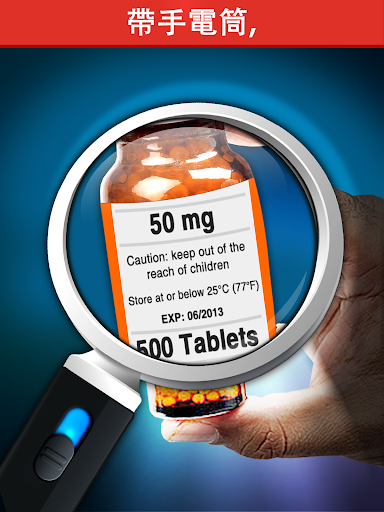 App Store最簡單易用的放大鏡 - 集手電筒(LED手電筒)、數碼放大鏡、餐館選單閱讀器和處方藥瓶閱讀器於一身。