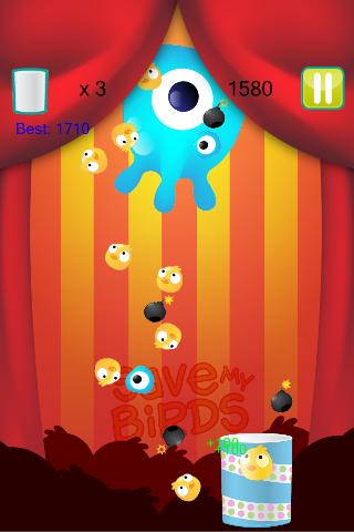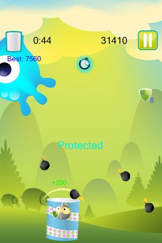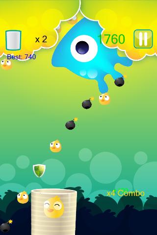 可憐的鳥兒从天上掉下来,快用杯子接著他們!可是掉下來的還有喜歡吃鳥的異形,和摧毀一切的炸彈!但不用擔心,拿到盾牌就可以保護杯子了!