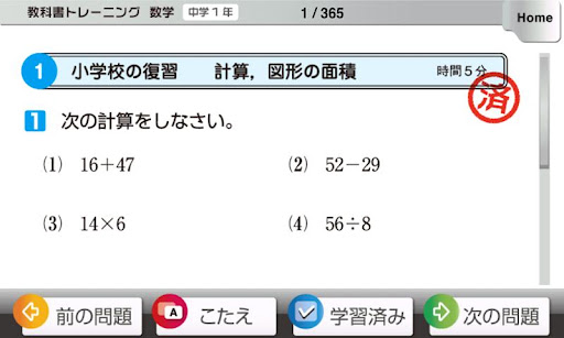 免費玩教科書トレーニング 数学1年 365日の数学トレーニング APP玩免費