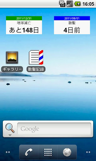 また、過去だけでなく将来の日付も指定できます。その場合は、予定日まであと何日かというカウントダウンを表示します。過去の事は青で、未来の事は緑で表示します。ウィジェットも同様です。