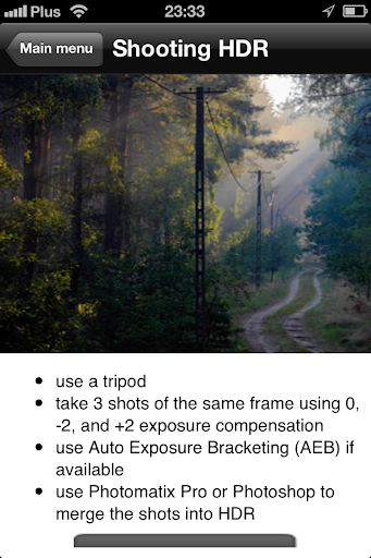 照片指南囊括萬象,無論下一次的最佳拍攝時機出現時,您身處何方,您都能獲得所需的信息。您無需連接到互聯網上…所有信息都嵌入在應用程序的本身。