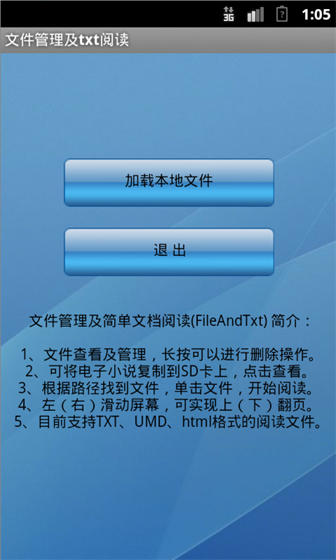 4、目前支持TXT、UMD、html格式文件的阅读和查看。