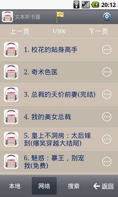 听TXT语音书,支持看,听TXT格式书籍,目前提供言情,玄幻,都市,武侠,网游,历史,校园,灵异,科幻,剧情,名著,侦探,经典,教育,财经,健康, 纪实,短篇,哲学,笑话,诗文等几十万部内容,您也可以导入您自己珍藏的TXT格式书籍享受听\看书的乐趣.听TXT书支持android2.1以上版本.