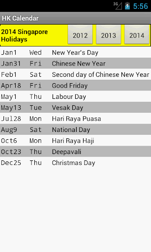 新加坡日曆,2013和2014公眾假期,記事和提醒功能,3種尺寸部件,可選黑/白,公眾假期列表,農曆,支援英文,繁體和簡體中文。