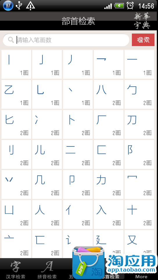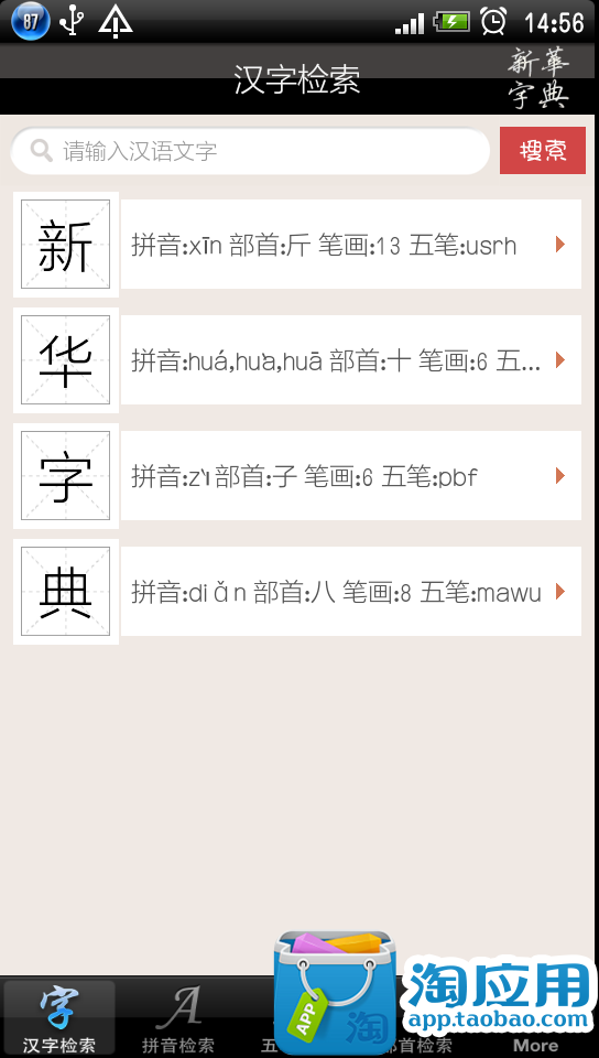 在编辑框内输入汉字后,按右侧搜索按钮,将会查处您所需查阅的汉字.