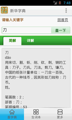 有了她您就等于同时拥有了《新华字典》、《新华词典》、《辞海》、《现代汉语词典》、《成语词典》,并且仅占用您140KB的存储空间,使用时需要接入网络,耗费的流量极小,方便快捷。