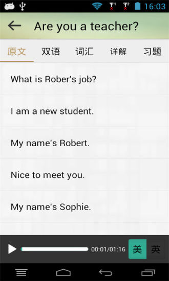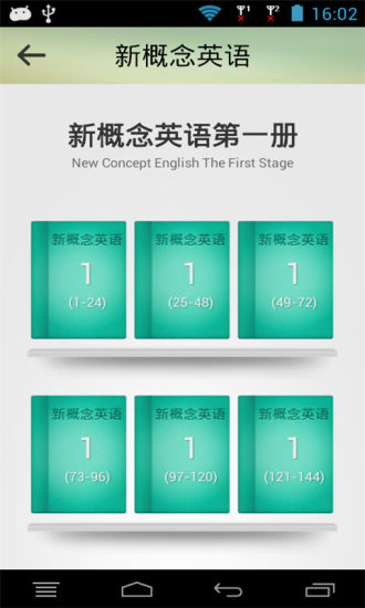 《新概念英语》安卓应用系列震撼推出啦!包含新概念1-4全册有声英语教程:课文双语对照、音频文本 同步播放、权威详解、课后练习配套辅导。