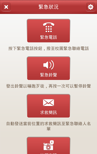 6、緊急求救功能,可用手機直撥校安電話、拍照存證、發出緊急鈴聲,讓學生可在最短的時間內主動連絡學校,請求緊急協助。