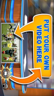 您还可制作自己的新闻视频,让汤姆和本发表评论。只需按应用中的电视按钮以使用摄像头录制视频,或从相片应用中选择一段现有视频。然后将在应用中播放视频,您可以以汤姆和本的身份对视频发表评论。