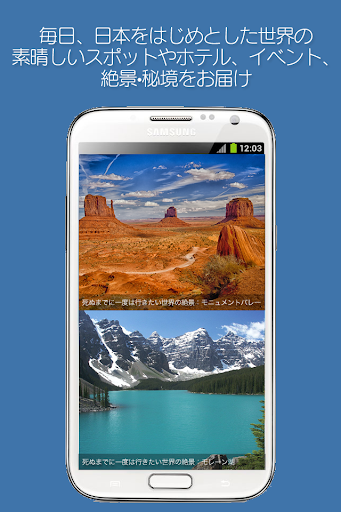 毎日、日本をはじめとした世界の素晴しいスポットやホテル、イベント、絶景•秘境をお届けする旅アプリ。