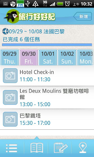 ● 貼心的記事功能,內建行李打包清單,讓你不丟三落四;還可以設定任務提醒,不錯過營業時間,不被美術館拒於門外。
