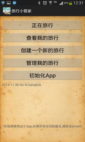 在旅行中,能够使用这个App记录旅行过程中的帐务,以及通过读取GPS数据,纪录旅行的过程轨迹.