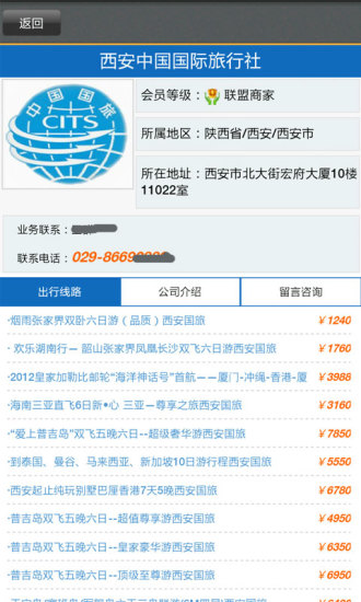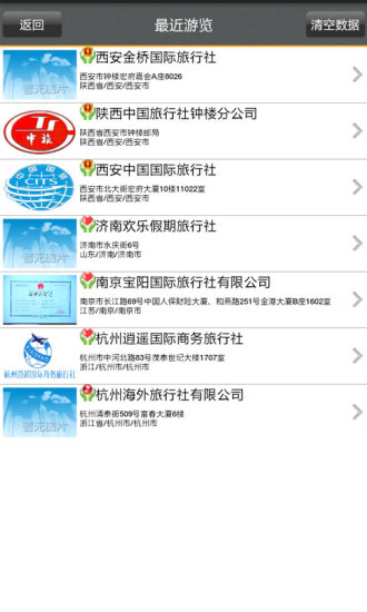 遨游旅行社[1.2]旅行社-旅游公司手机客户端软件依托企盼科技旗下遨游网及遨游搜的专业旅游团队而独立出来的具体丰富互联网及在线旅游服务经验的人员组成。软件为旅游爱好者提供全国900多家旅行社查询,根据手机位置自动定位到当前城市,查询该城市有哪些旅游公司(旅行社),查看旅行社介绍、地址、电话及旅行社提供的出行线路、周边酒店等实用信息参考。