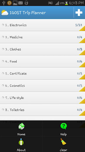 旅行計劃是一個Android應用程序,它可以幫助你組織你需要的一切旅行。這是一個方便,快捷的方式添加所需的項目要進行旅行。檢查的旅行計劃,您可以很容易地拿起旅行所需的所有項目並沒有忘記一個單一的。我們提供了默認的類別,也可以添加新的類別。選擇子類別中的項目,這是一個易於為用戶選擇所需的項目清單提供。