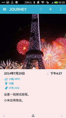 写字加照片,然后 App 自动获取时间、地点、天气等数据,添加到你的游记里。