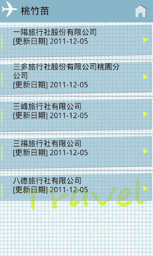 介紹全台各大旅行社相關資訊,並將各旅行社依區域分類,也可透過即時更新提供旅行社最新聯絡方式及網站。