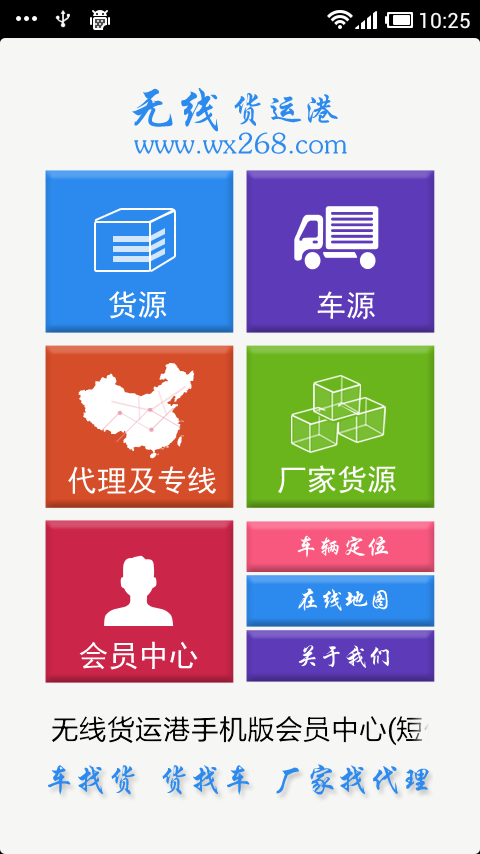 车找货,货找车,厂家找物流,免费物流信息平台,轻轻松松帮您带来财富!