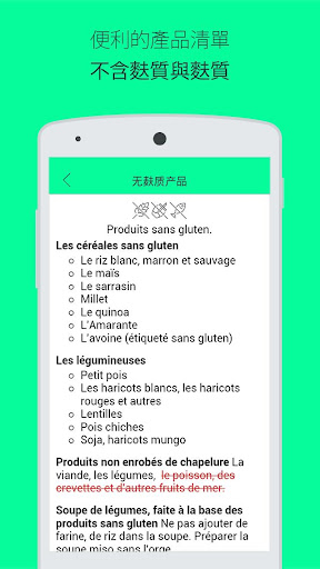 在商店使用它,以便店员能协助检视选购商品是否能为你食用。详尽的无麸质及含麸质商品清单不论在商店或各个厨房都很受用。
