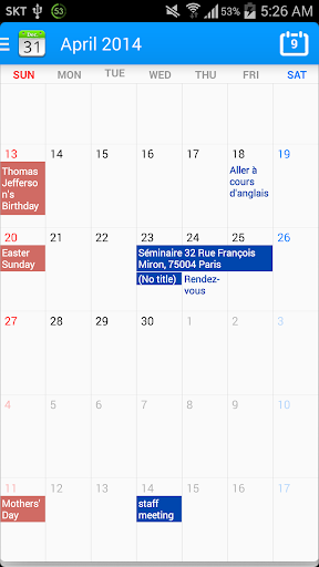 日曆 +是一個可怕的谷歌日曆應用程序,可以幫助您管理您的日曆上每一個事件。日曆自動同步您的Google帳戶和顯示事件通過各方面的意見和選擇。日曆 +不僅提供每日,每週,每月和議程的意見,但也自定義視圖,你可以輕鬆地定制。日曆+提供快速添加功能,使用戶可以添加一個新的事件,在眨眼。隨著日曆 +文字或語音輸入,你可以添加一個新的事件。我們的自然語言解析引擎能夠理解不同的日期和時間格式,並添加一個新的事件比以往任何時候都更容易。您還可以: