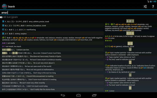 天神是快速,免費,無廣告和離線工作。它的背後是一個多語言數據庫日本人在英語,西班牙語,法語,德語,荷蘭語,俄語和葡萄牙語翻譯。