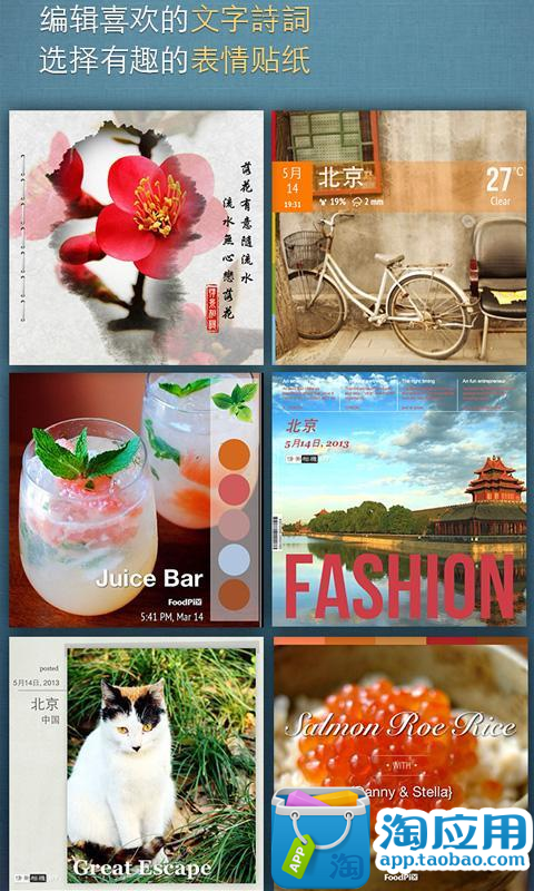 3.更有杂志,天气,美食,签到等系列模板满足任何拍照情景