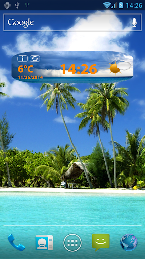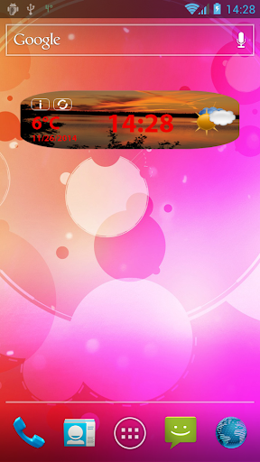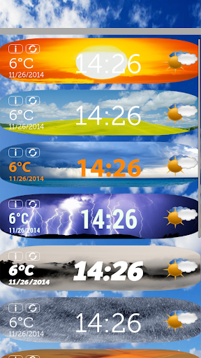 這個很酷的widget界面和4X1的小尺寸的獨特的外觀使一個完美的裝飾為您的主屏幕創建你的壁紙,你有其他部件一個美麗的組合。種類繁多的設計可以幫助你選擇完美的“天氣與時鐘部件”為你匹配你的背景圖像或動態壁紙。如果你討厭下雨,設置一個真棒天氣小部件與陽光明媚的天空,你會覺得馬上要好得多。如果你不能等待雪下跌,設置時鐘和天氣小部件與裝飾雪花調用降雪。但是,沒有,你選擇哪一個事情,所有這些美麗的小部件看起來完美您的主屏幕上的原因,他們是藝術的真正的工作。