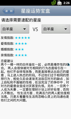 星座运势宝盒选择星座后将开启今天、明天、本周、本月、本年度的运势信息,还有星座配对,个性信息,星座来源,传说等多项内容,更有大量实时更新的星座新闻可以查看,星座文化等资料的分析,让你运气更好,更旺。
