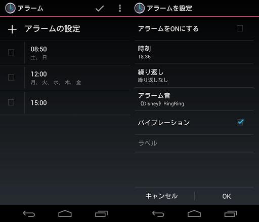 デフォルトで端末に搭載されているアラーム機能となりますので、