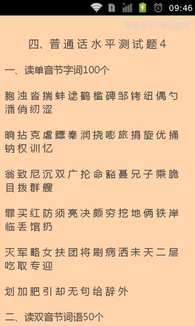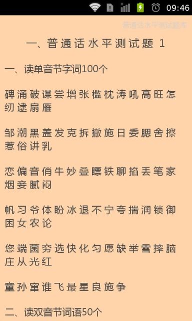 普通话水平测试是对应试人运用普通话的规范程度的口语考试全部测试内容均以口头方式进行普通话水平等级分为三级六等,即一、二、三级,每个级别再分出甲乙两个等次;一级甲等为最高,三级乙等为最低应试人在运用普通话口语进行表达过程中所表现的语音、词汇、语法规范程度,是评定其所达到的水平等级的重要依据