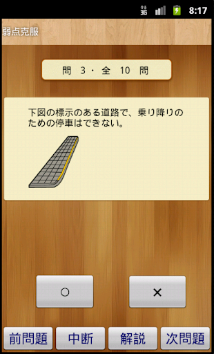スタートを押すと免許問題が表示されるので、頑張って全問正解をめざしてください。もちろん、模擬試験が終わったら結果画面で自分の成績や正解問題リスト、不正解問題リストが見れます。 なお、試験中にいつでも一時に中断することができ、次回に「前回の続きから始める」ことができます。