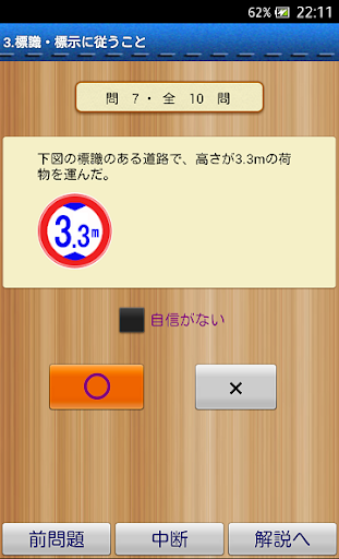 教習科目の内容によって、一つずつ問題回答します。やさしい解説も用意しております。なお、普通運転免許の学科試験の種類(仮免許か本免許)によって内容が異なります。