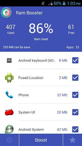 拉姆助推器提升拉姆,清理缓存和加速您的Device.Ram助推器是清理缓存的机器人工具。它的基本功能是重新启动在后台运行这些应用程序,节省内存。