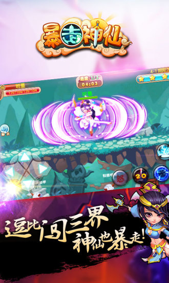 《暴走神仙》是全球首款动作版冒险岛手游,绝对值得一试!将动作、冒险与解谜、经典单机游戏元素完美融合!是一款2D横版多层卷轴式手机游戏,被誉为手机上的冒险岛。讲述了搞怪不羁的神仙后代被贬入凡尘后,依靠智谋和勇武重回天庭的故事。玩家可以从四位主角任一视角开始游戏,集结不同职业的四人小队,使用各有特色的技能过关斩将、降妖除魔!