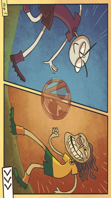 游戏的主角有着一张怪蜀黍的笑脸和和猥琐的笑声给玩家留下深刻印象。一个超级贱的游戏,主角是一个很贱的鬼脸小人,有点类似于脑筋急转弯,玩这个游戏可以挖掘自己的外星人潜质,思维一定不能正常!正常你就输了!