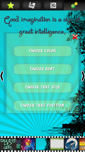 這個Android應用程序允許你有創意,玩的東西你created.You可以選擇顏色,大小,字體,文本位置,並挑選在這個應用程序中的圖像是從鼓舞人心的收集。