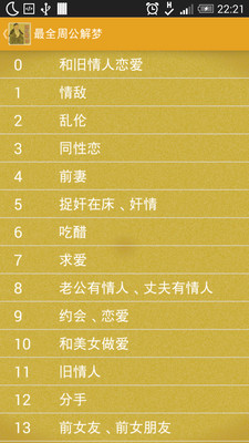 一款查询做的梦有什么寓意的应用,可以分享到各个平台,并且可以收藏,同时如果本地没有的搜索到,可以在线去搜索。后期还会增加星座等功能,目前有10个模块,分别对应做梦的类别,数据也会慢慢的增加。包含恋爱,身体,性爱等等