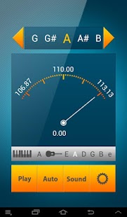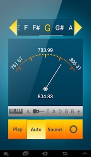 屏幕上的按鈕用於演奏吉他琴弦的個人聲音和鋼琴中間的“A”的聲音。設置允許您指定的麥克風,基頻,並於440赫茲的頻率美分偏差的敏感度也有定義一個特定的倍頻和聲音的名稱的可能性。